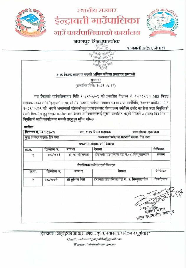 नतिजा प्रकाशन सम्बन्धमा !