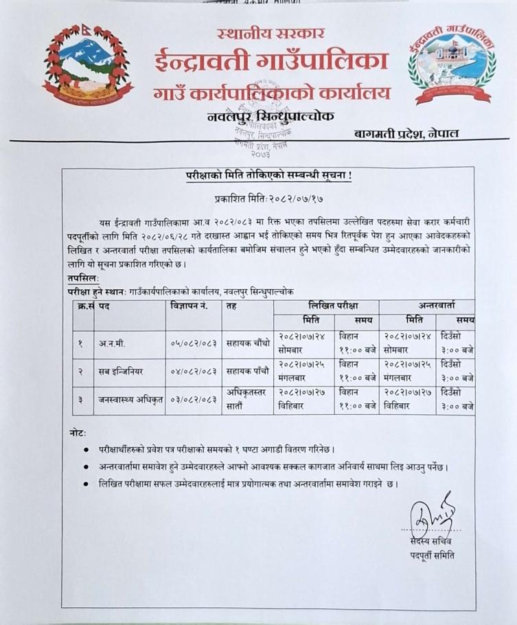 परिक्षा मिति तोकिएको सम्बन्धमा !
