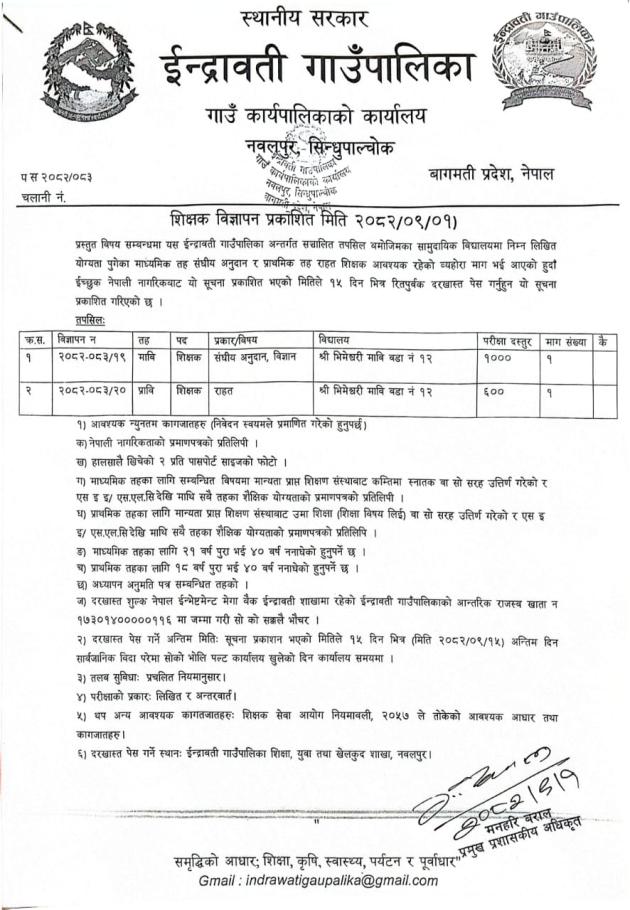शिक्षक बिज्ञापन सम्बन्धमा !