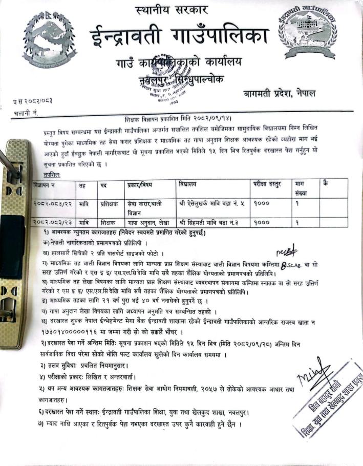 शिक्षक बिज्ञापन सम्बन्धमा !