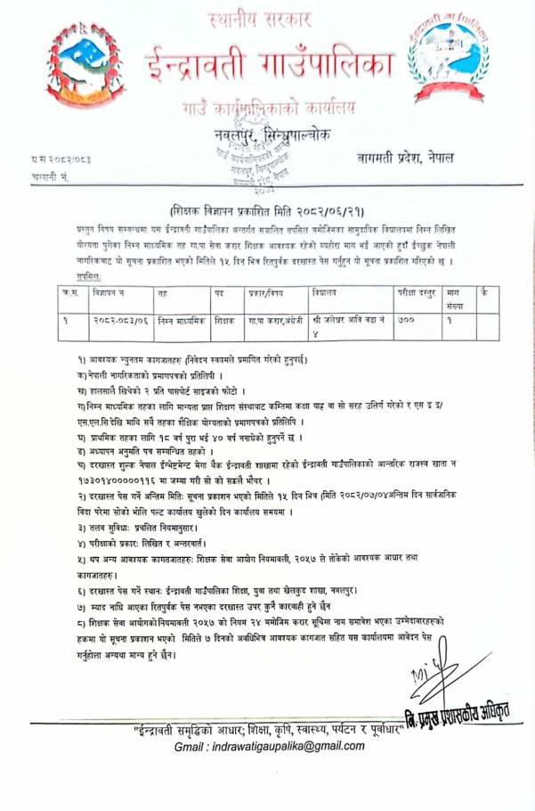 शिक्षक बिज्ञापन सम्बन्धमा !