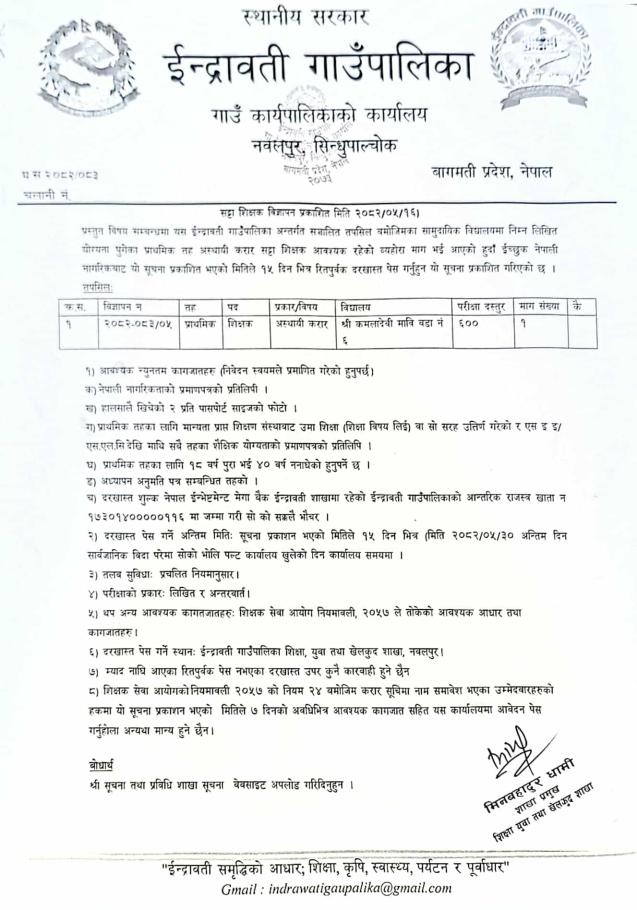 शिक्षक बिज्ञापन सम्बन्धमा !