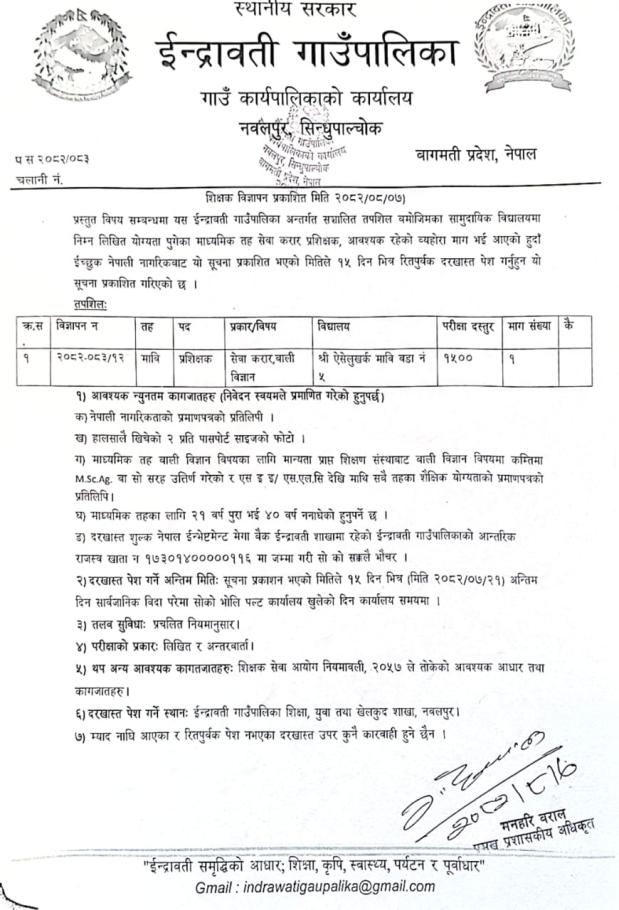 शिक्षक बिज्ञापन सम्बन्धमा !