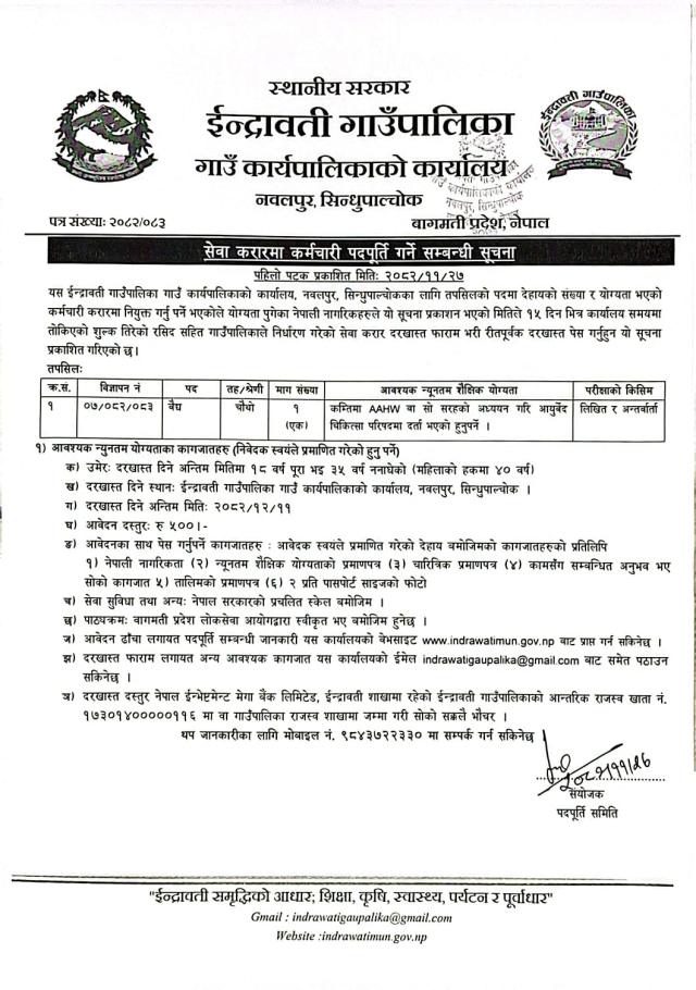 सेवा करारमा कर्मचारी पदपूर्ति गर्ने सम्बन्धमा !