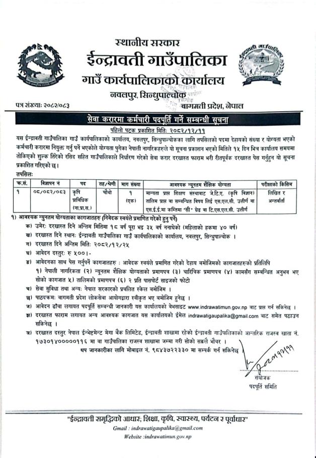 सेवा करारमा कर्मचारी पदपूर्ति गर्ने सम्बन्धमा !
