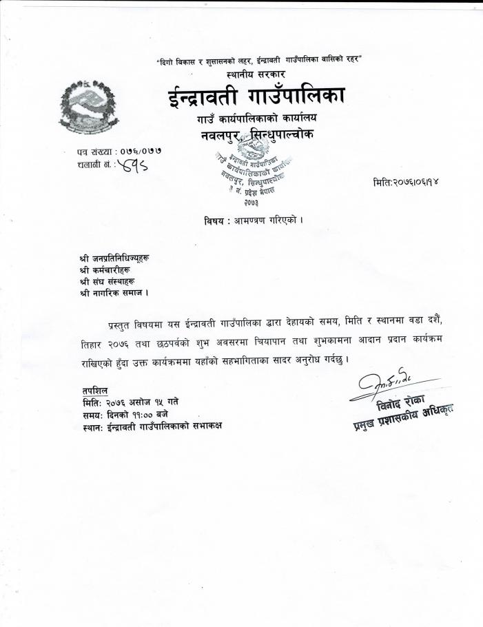 अामन्त्रण गरिएकाे सम्बन्धमा ।