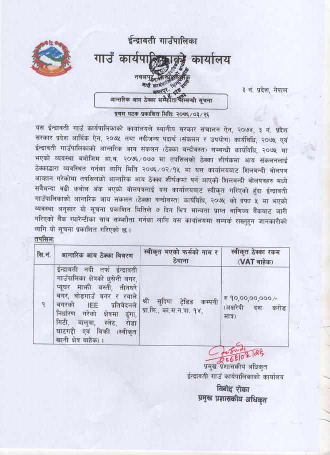 आन्तरिक आय ठेक्का सम्झौता सम्बन्धी सूचना