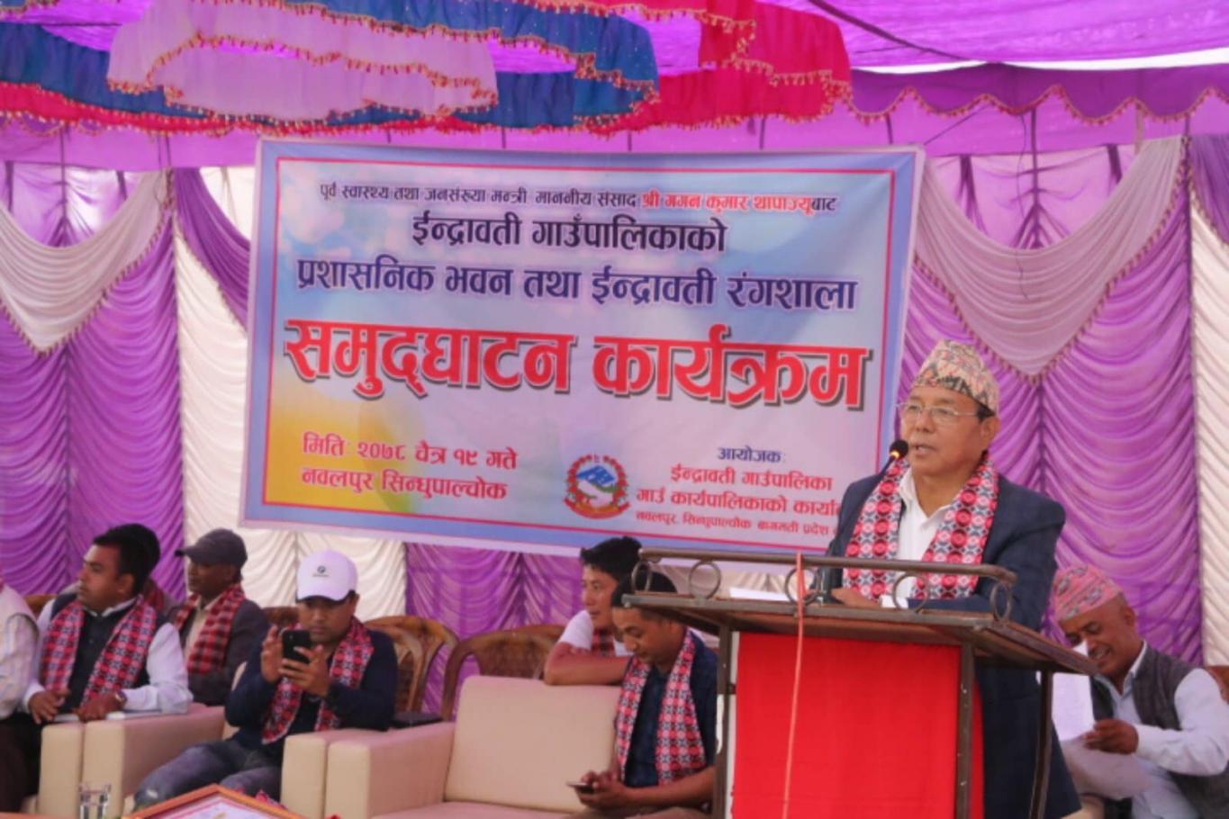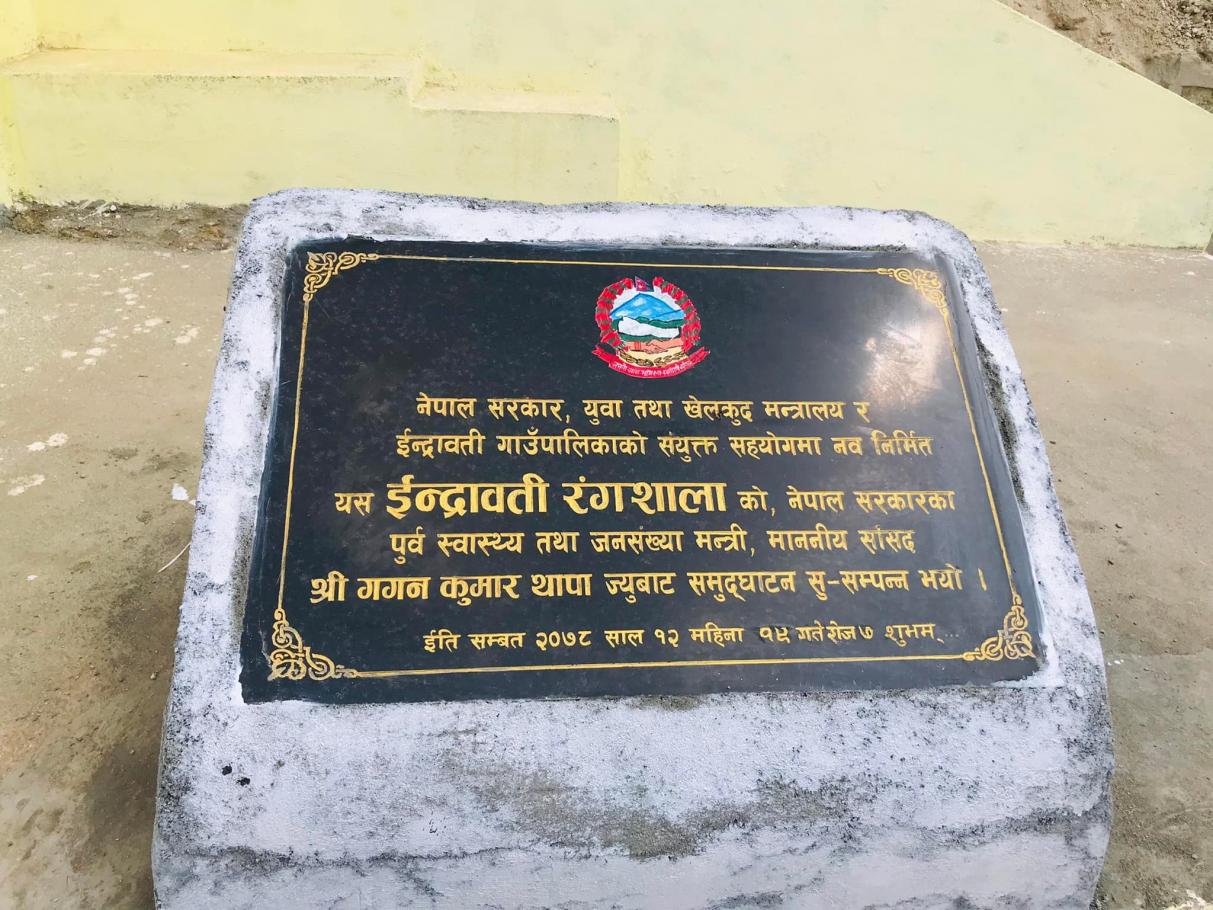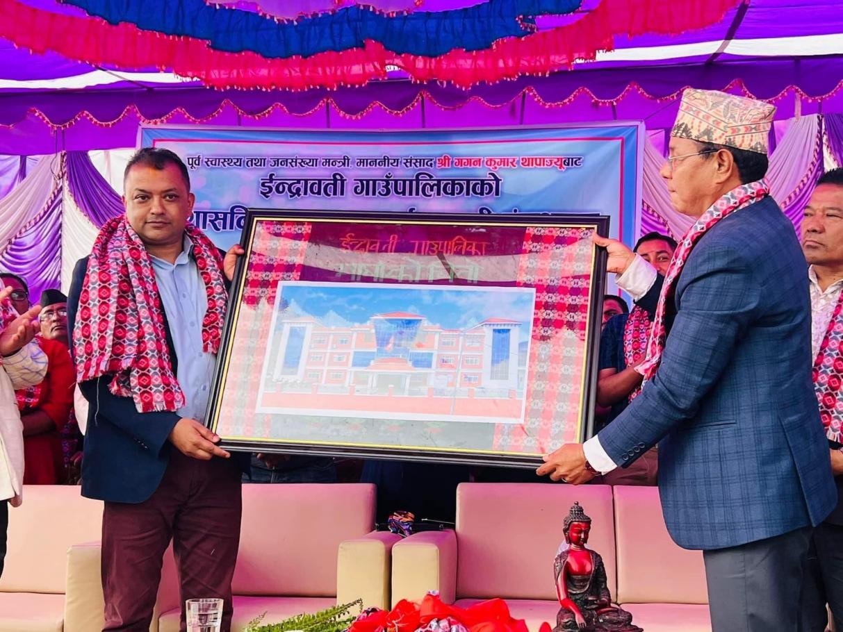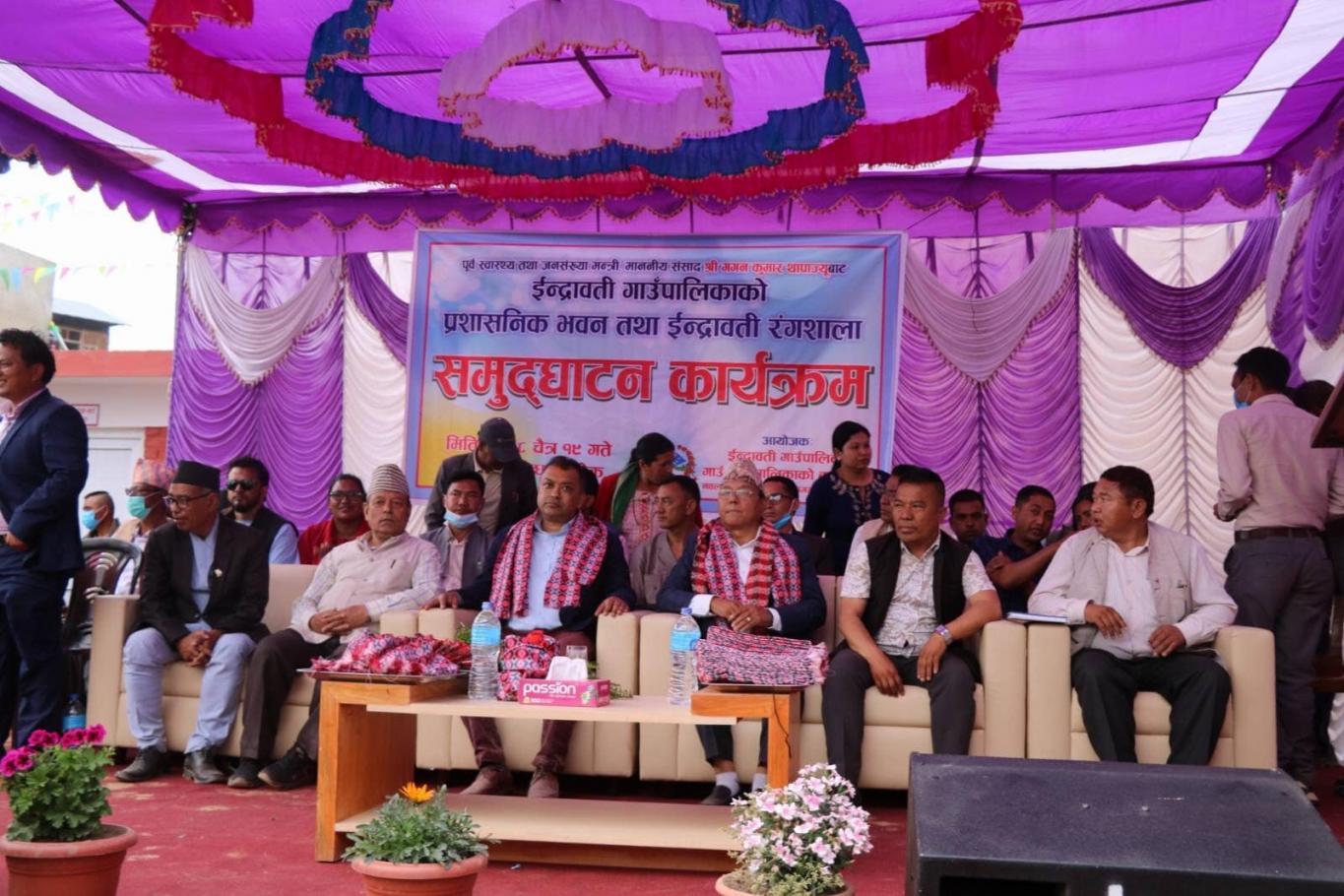ईन्द्रावती गाउँपालिकाको प्रशसनिक भवन तथा ईन्द्रावती रंगशालाको नेपाली कांग्रेसका महामन्त्री नेपाल सरकारका पूर्व स्वास्थ्य तथा जनसंख्या मन्त्री गगन कुमार थापा ज्यूको प्रमुख आतिथ्ता समुद्घाटन सम्पन्न ।