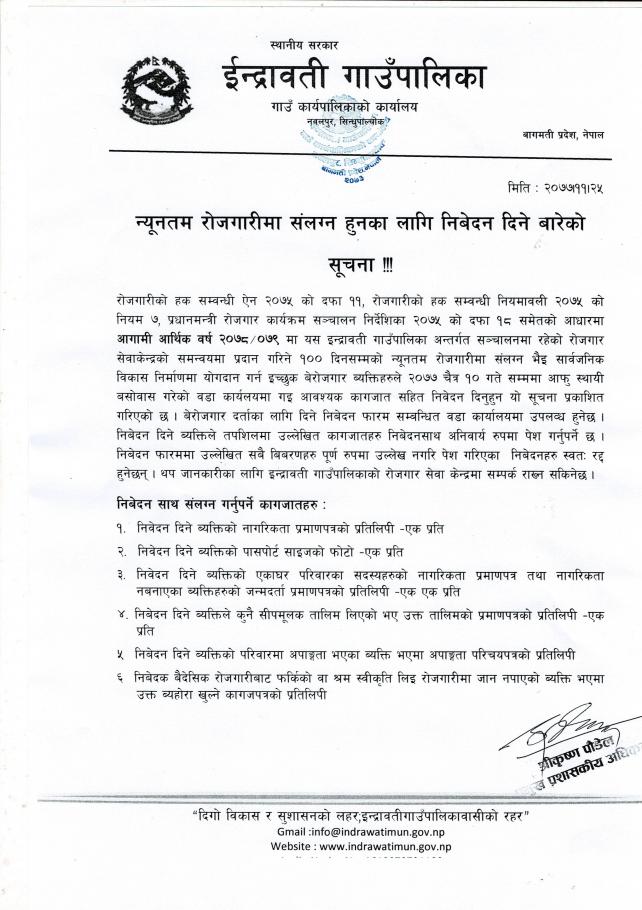 न्यूनतम रोजगारीमा संलग्न हुनका लागि निबेदन दिने बारेको सूचना ।