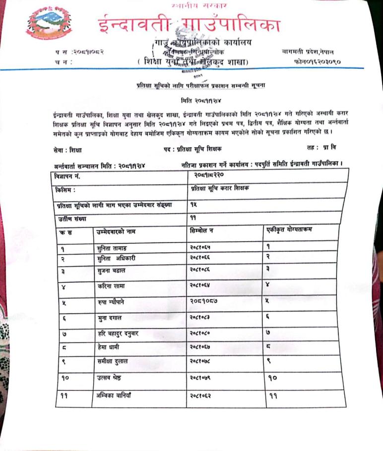 प्रतिक्षा सूचिको नतिजा प्रकाशन सम्बन्धि सूचना !
